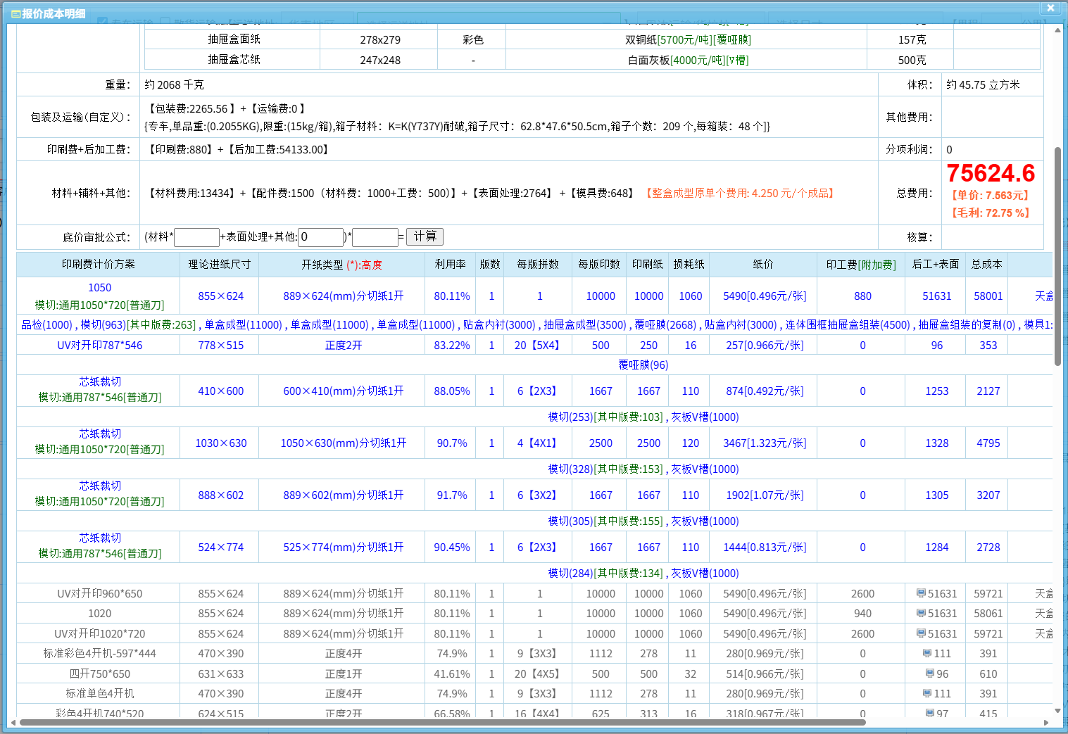 此外,软件的自动拼版功能,能在报价阶段即为您充分考虑纸张的利用率,助力企业降本增效。这为您的报价提供了更科学的依据和更有竞争力的报价,避免了因耗材计算不准带来的隐