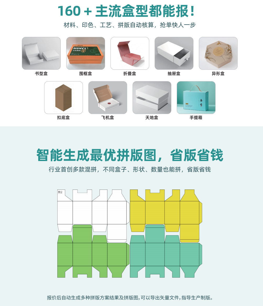 迅越的每一项技术突破都源于对行业痛点的深刻洞察。当同行还在为“报价慢” 困扰时,迅越的印刷包装智能报价系统已实现 “160 +盒型秒级报价、多终端无缝适配、装箱运费智能核算”的三重突破 —— 把复杂的工序工艺在系统算法中转化为精准的数字语言,让业务员从“报价焦虑” 中彻底解放。