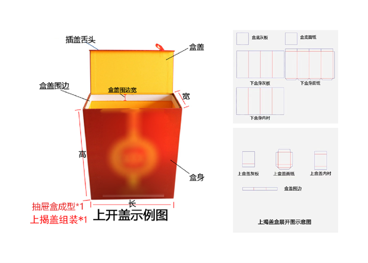 系统将复杂的揭盖式酒盒结构分解为上盒盖、下盒身、盒底等标准部件,每个部件均可独立配置面纸、衬纸、灰板等材质参数,实现“部件化精准核算”,从源头避免材料成本估算偏差。